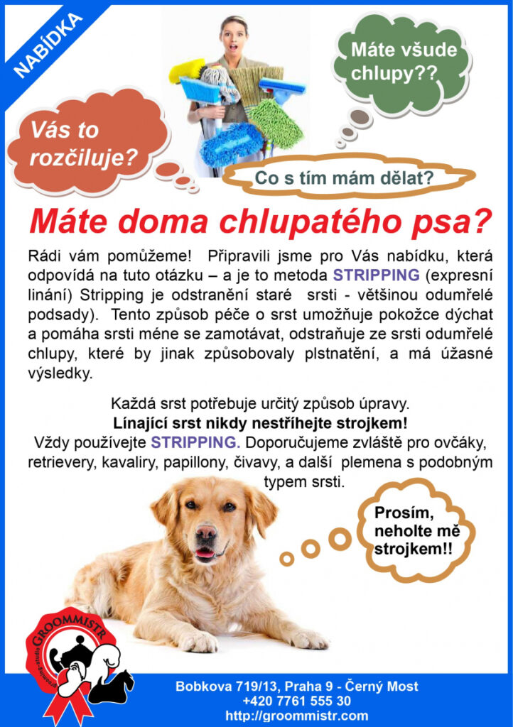 Máme širokou řadu služeb od koupání přes stříhání, vyčesávání a trimování, poradenství v péči o srst psů a koček až po výstavní úpravy.